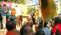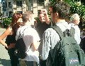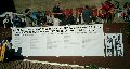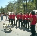 Joves de Mallorca i d’Eivissa, que hi són presents, també reben els insults i maltractaments d’aquest grupuscle de fanàtics que, amb mètodes feixistes que hom creia superats, pretenen fer malbé els avanços imparables d’Esquerra Republicana de Catalunya.