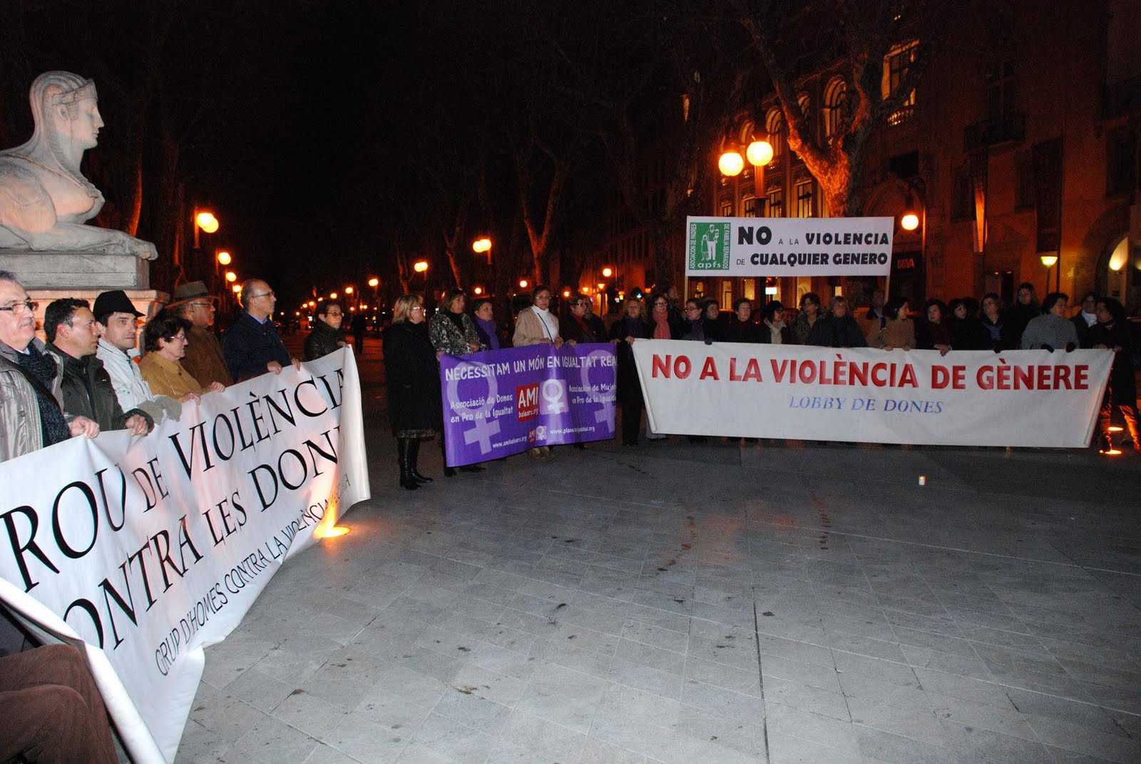Com sempre, membres del Lobby de Dones de Mallorca, el Grup d'Homes per la Igualtat i contra la Violència Masclista i l'Associació de Dones Creients i Feministes, amb les pancartes respectives hi han acudit, han escoltat atentament el parlament que s'hi ha fet i el recitat d'un poema, hi han guardat uns minuts de silenci tot recordant la dona assassinada, com la primera d'enguany (desitjant que en sigui la darrera)...